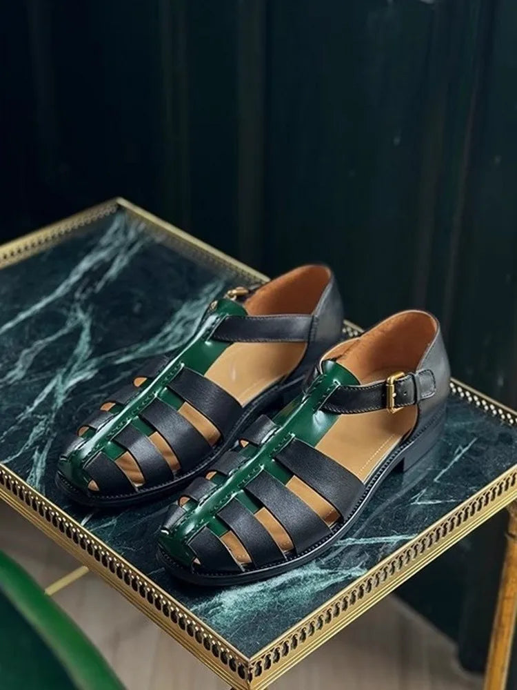 Men's Summer Retro Leisure Style Handmade Cow Leather Buckle Strap Hollow Out Sandals