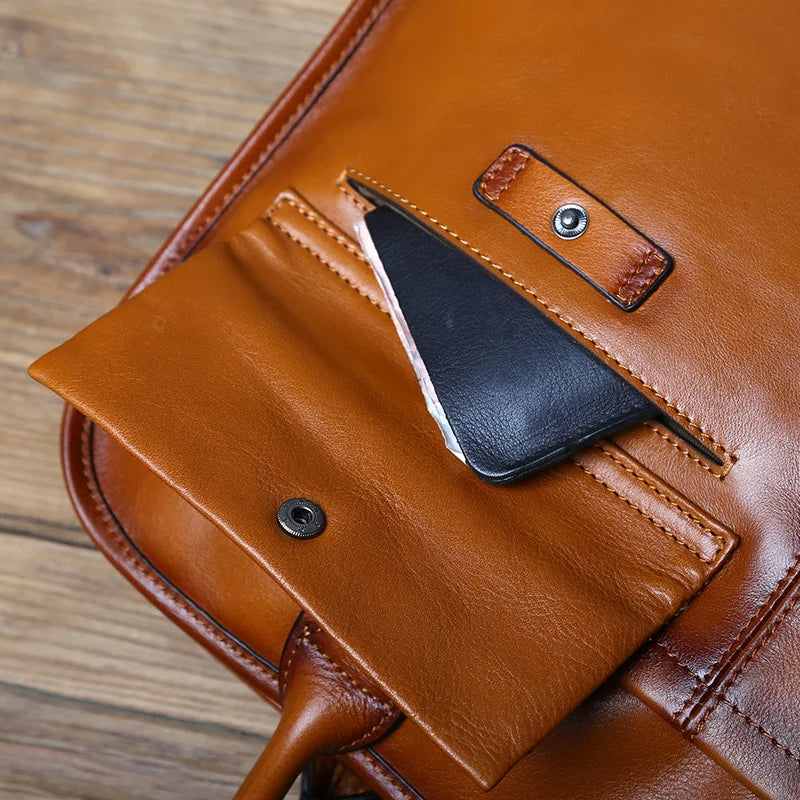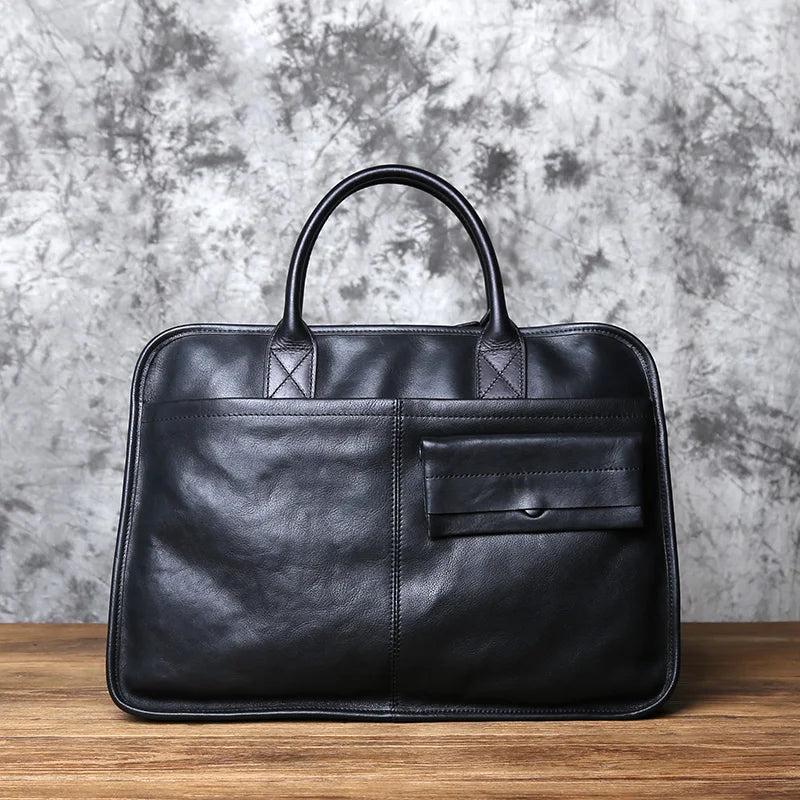 Men's Briefcase Style Retro Top Layer Cowhide Large Capacity Computer Handbag