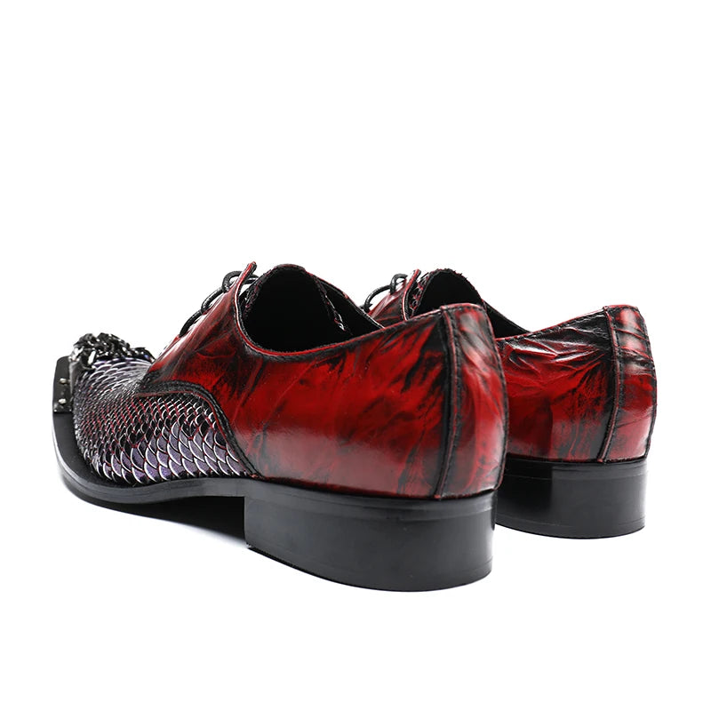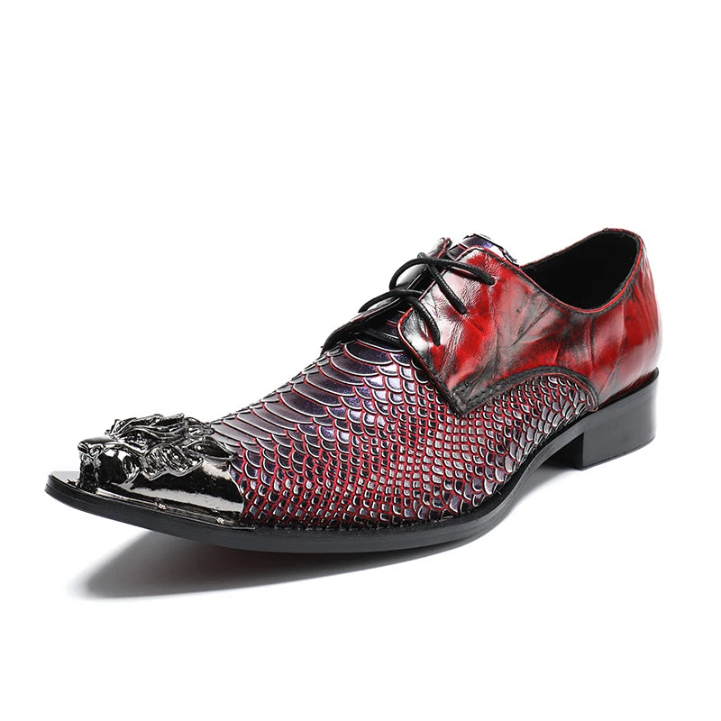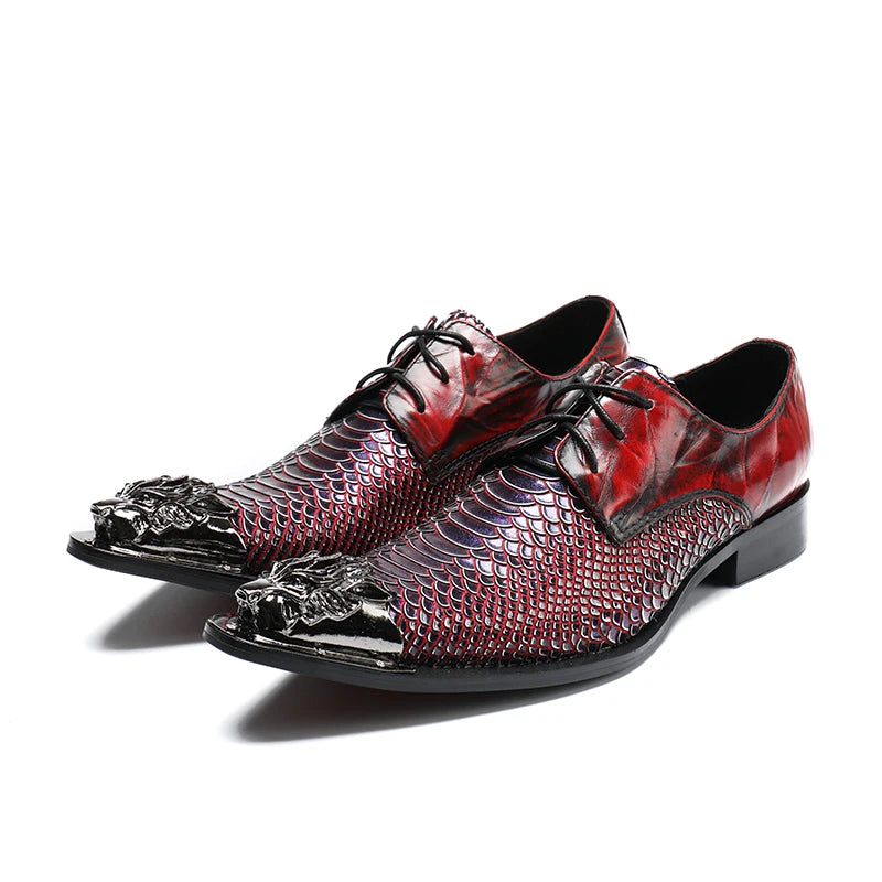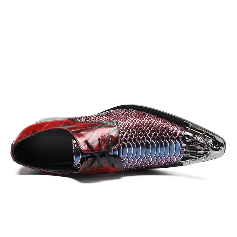 Men's Formal Genuine Leather Lace Up Iron Pointed Toe Snake Skin Dress Shoes