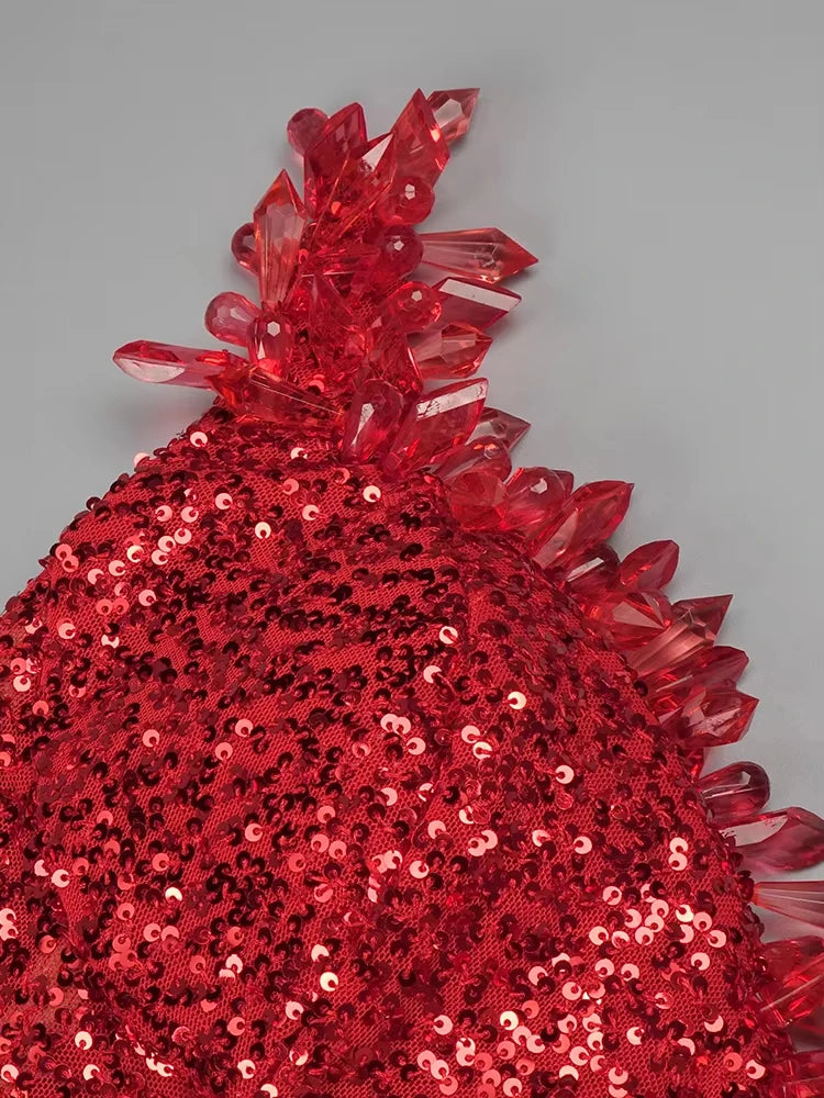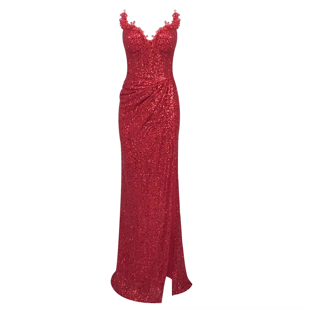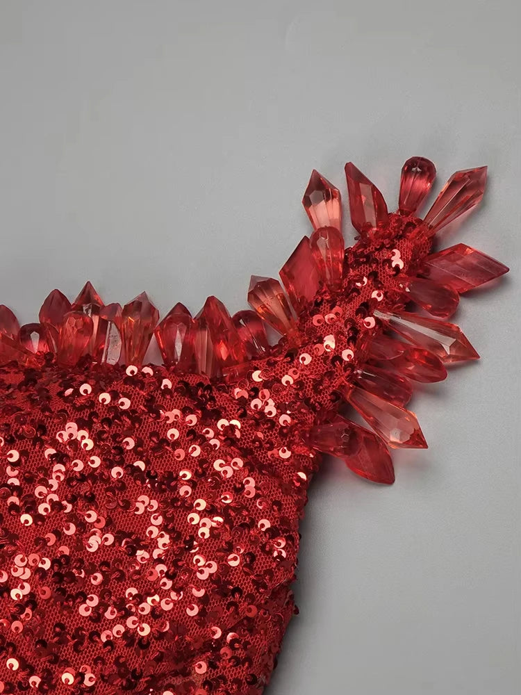 Women's Party Fish Tail Shiny Crystal Off the Shoulder Side Slit Dress