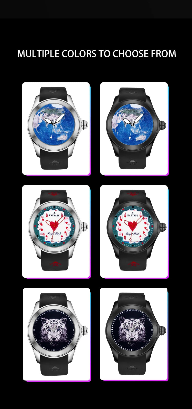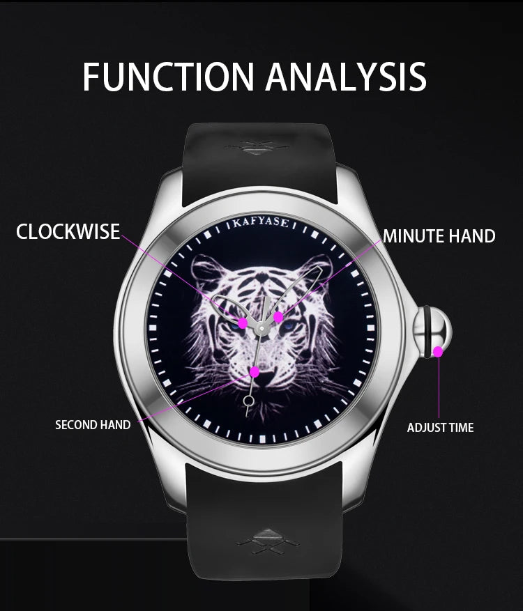 Elegant and unique, this men's watch is a great accessory to give you a much more chic look. The sleek design with a silicone strap and stainless steel casing makes it comfortable and perfect for everyday wear. The round ball dial looks unique with the 3D tiger, earth or card print. It is luminous and waterproof. A fantastic watch for men!