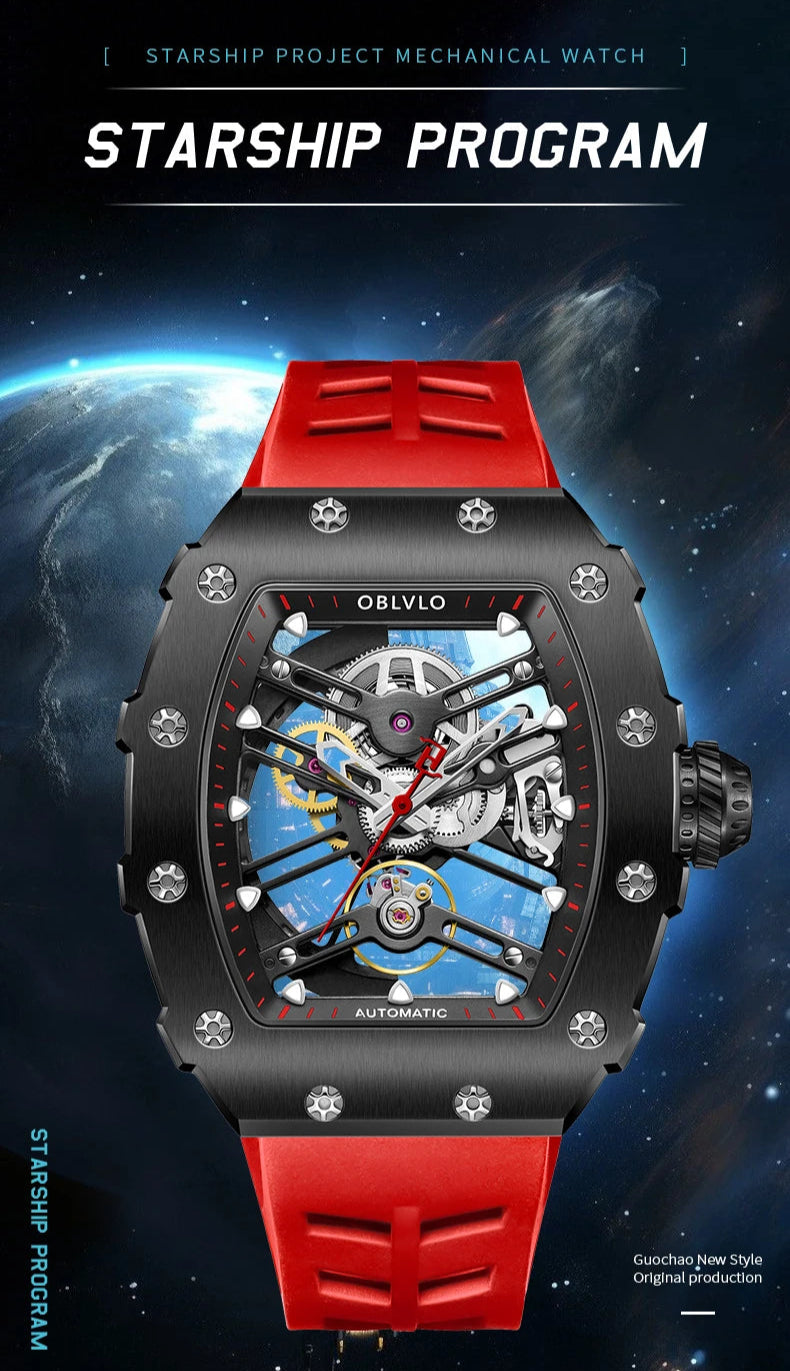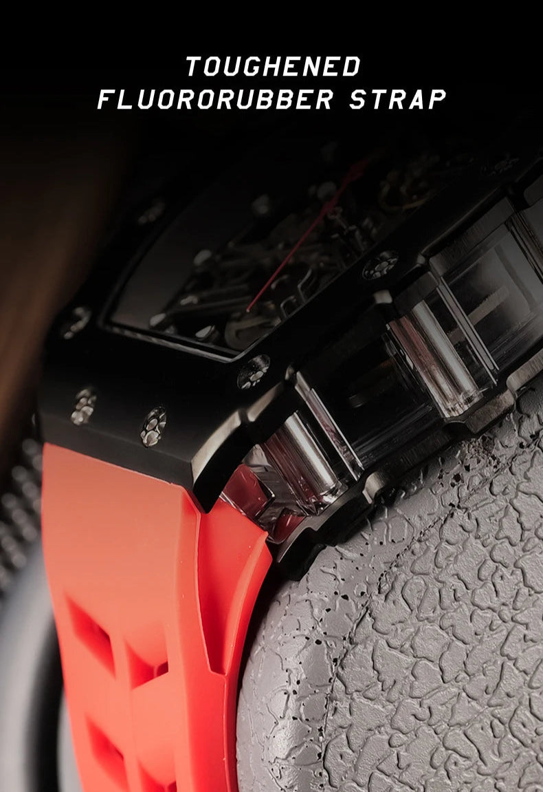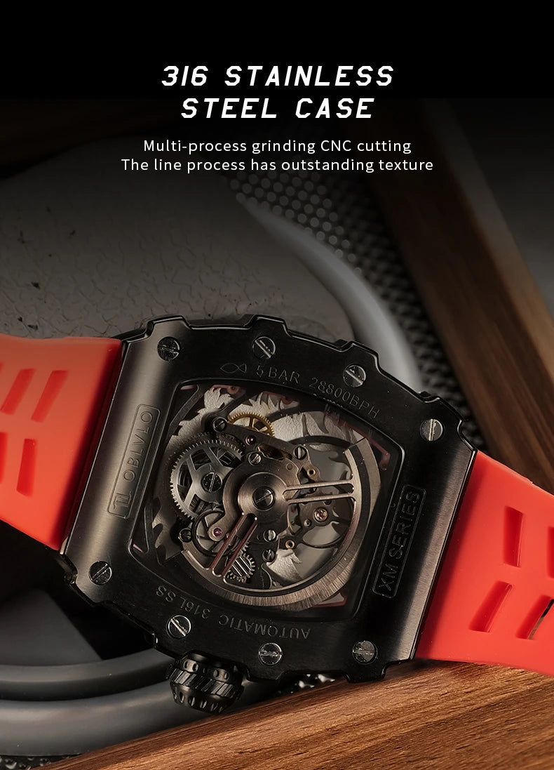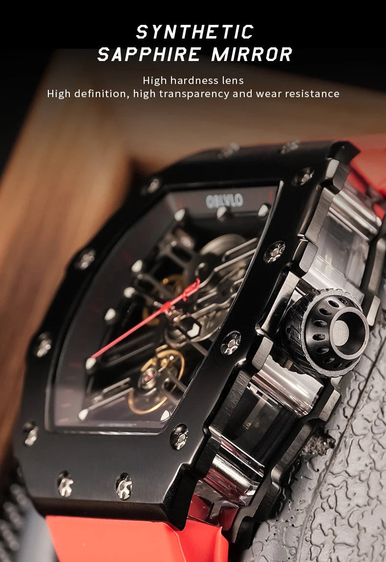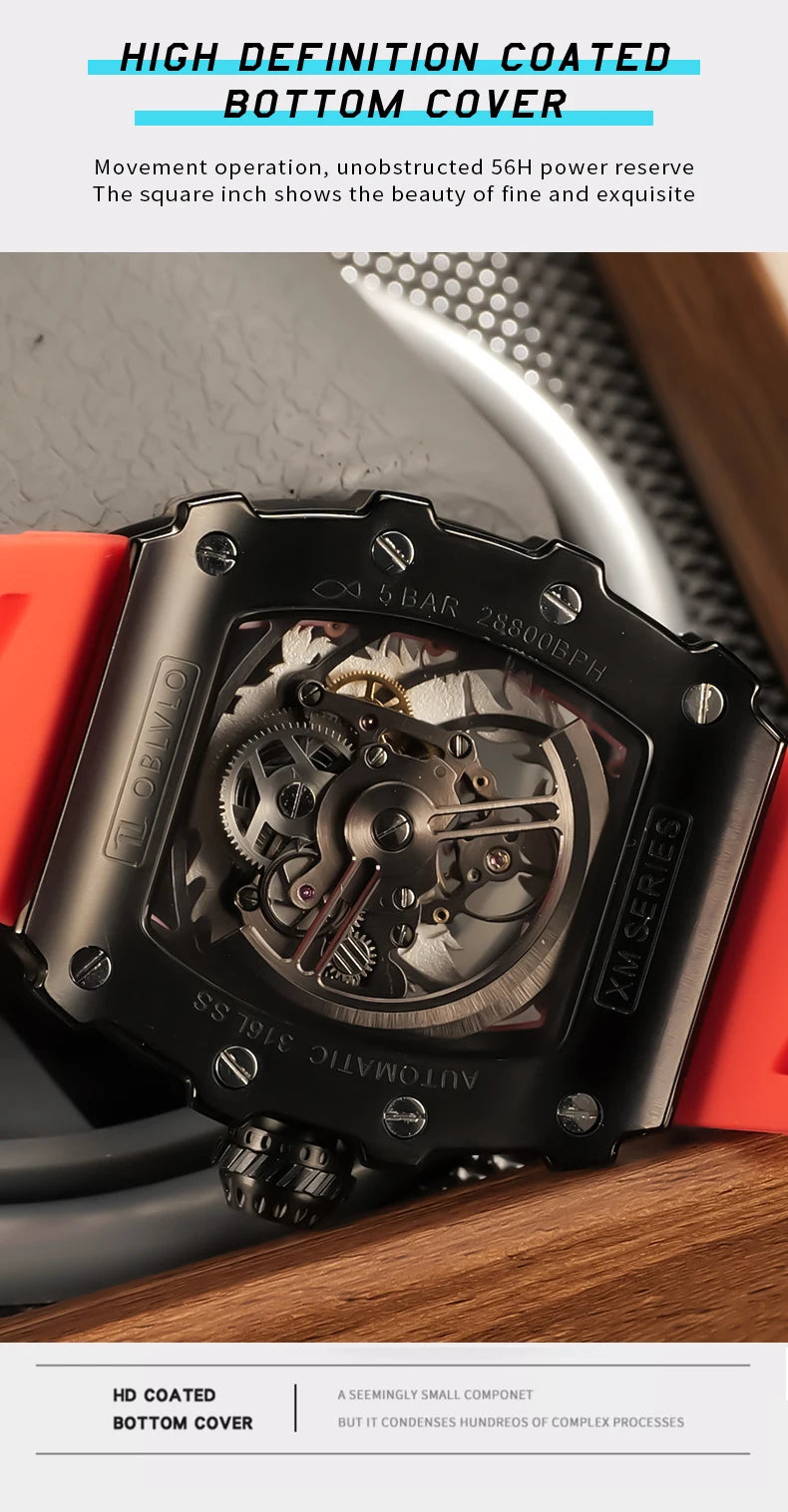 Trendy Style Diamonds Bezel Skeleton Tonneau Analog Mechanical Watch For Men