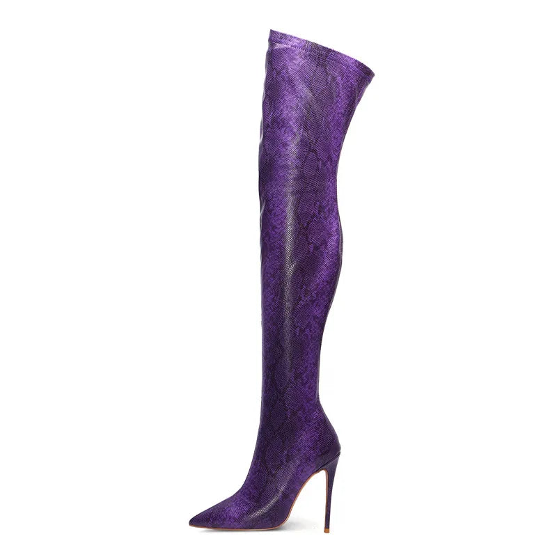 Overknee Pointed Toe Stiletto High Heel Snake Skin Pattern Women's Boots