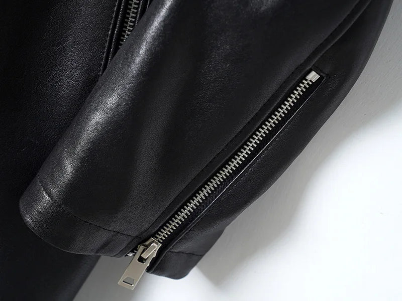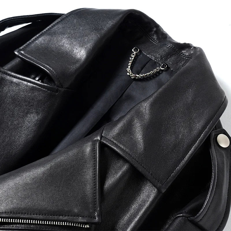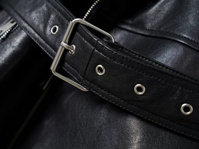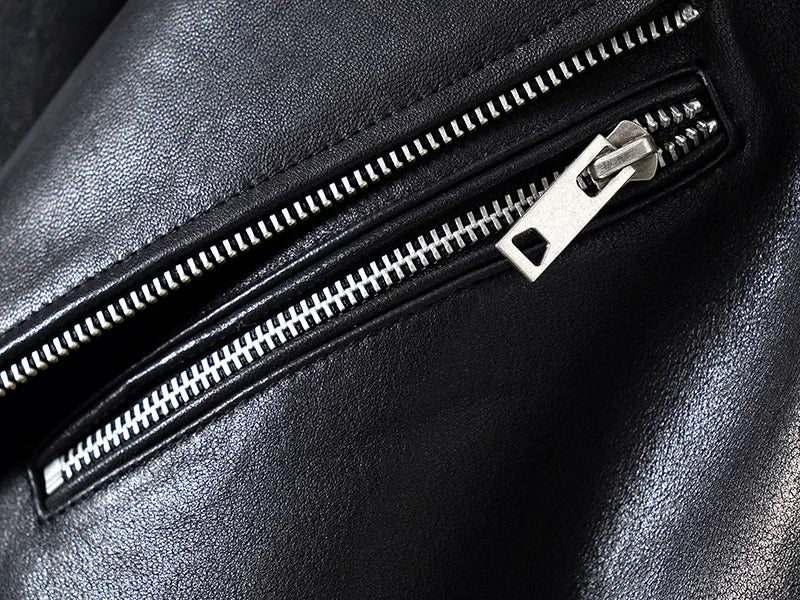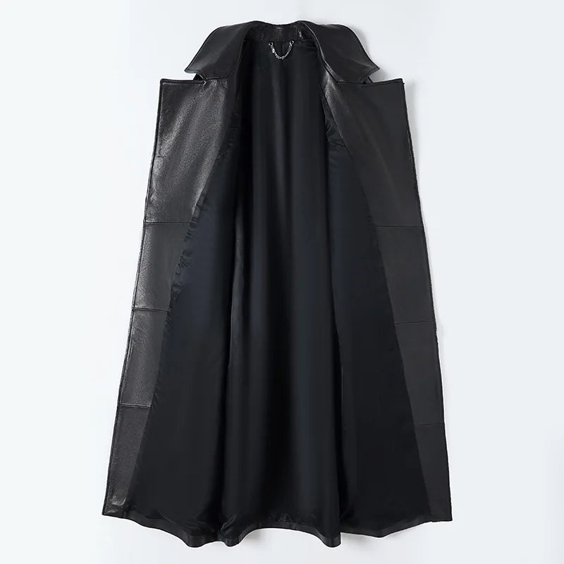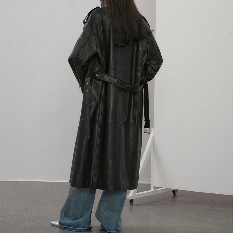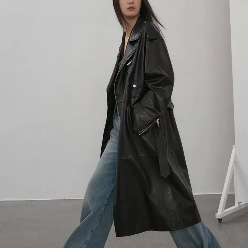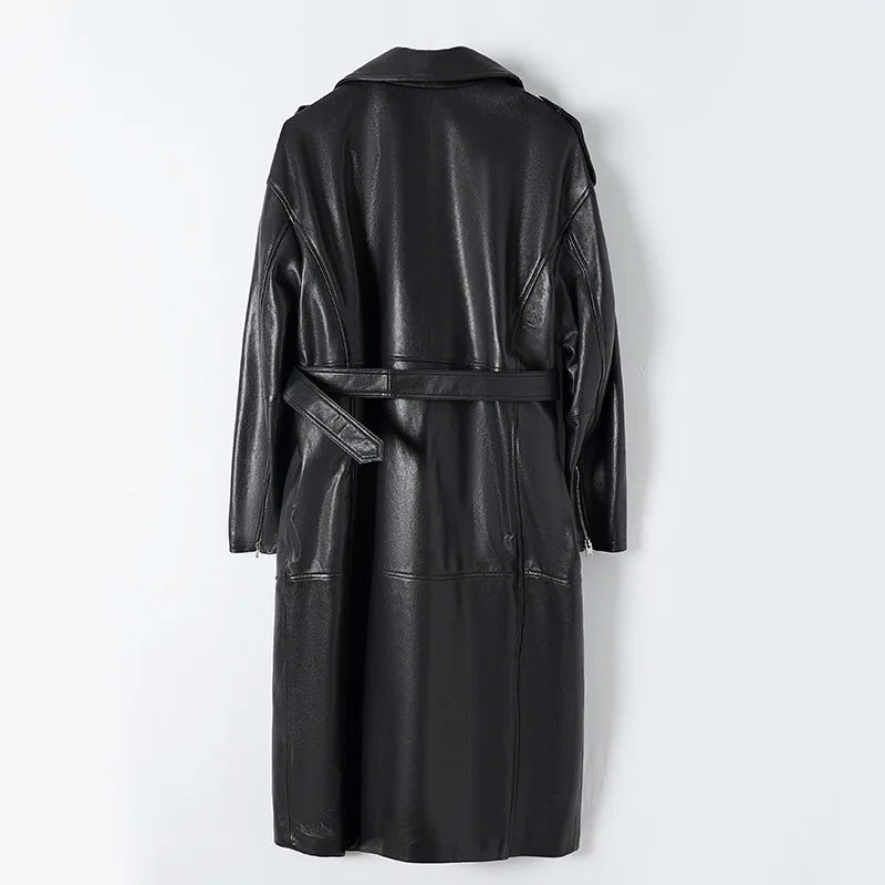 Women's Vegetable Tanned Sheepskin Loose Zipper Locomotive Long Trench Coat
