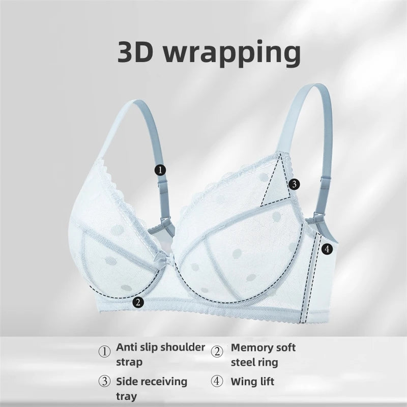 Polka Dot Push Up Unlined Lace Underwire Multiway Everyday Bra