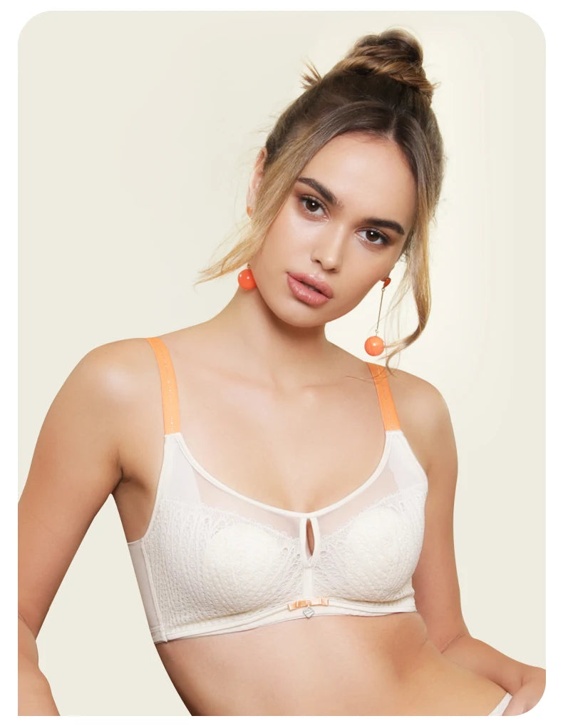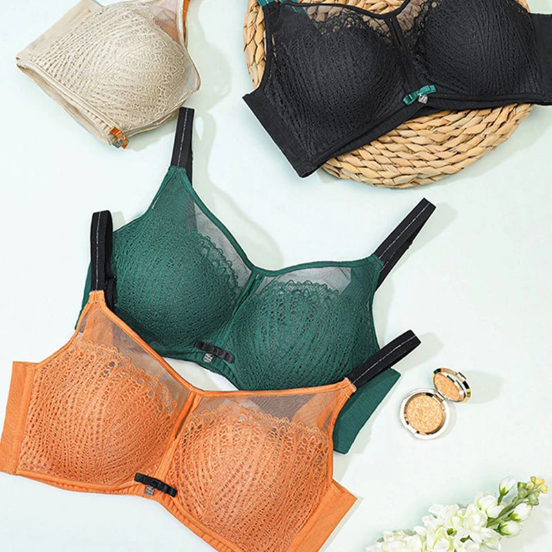 Three Quarter Thin Cup Push Up Plunge Mesh Splicing Underwear Lace Bra