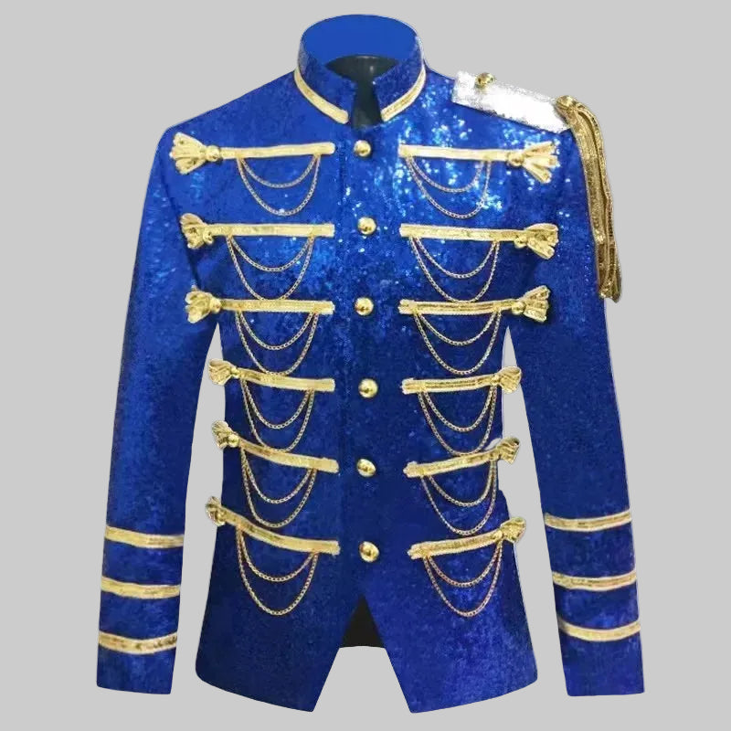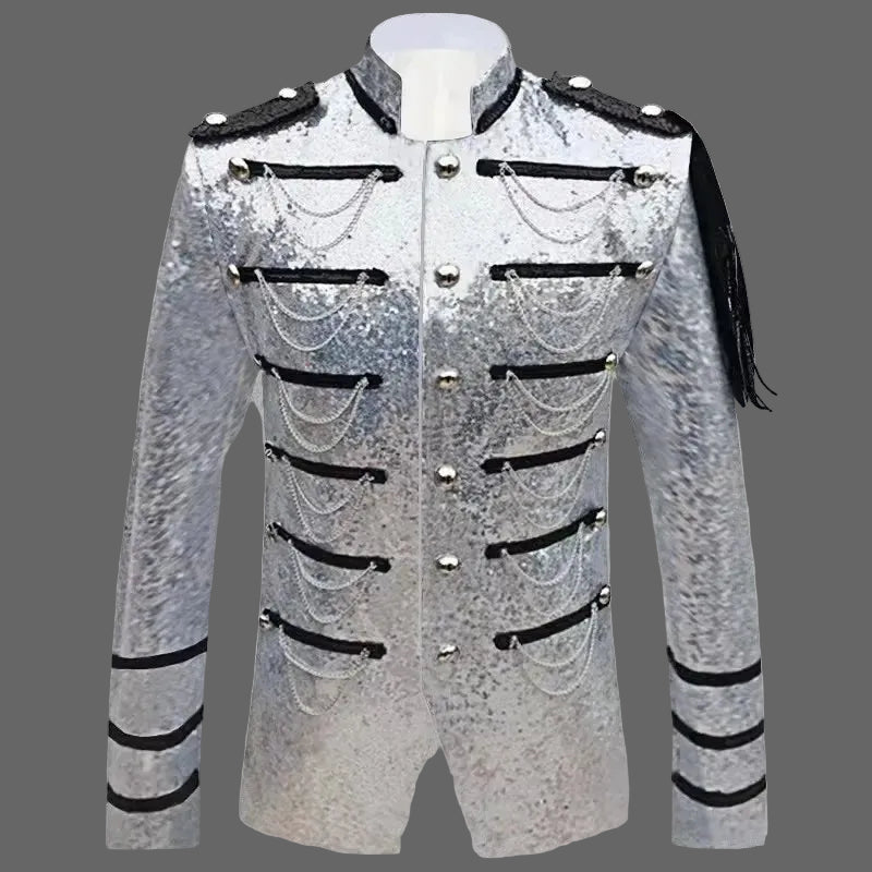 Men's High-Density Sequin Chain Decor Slim Night Singer Jacket