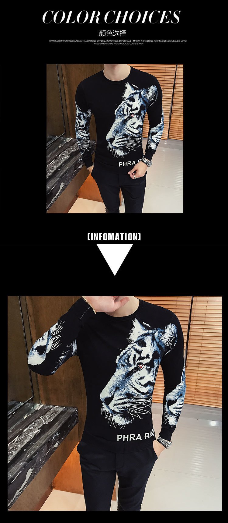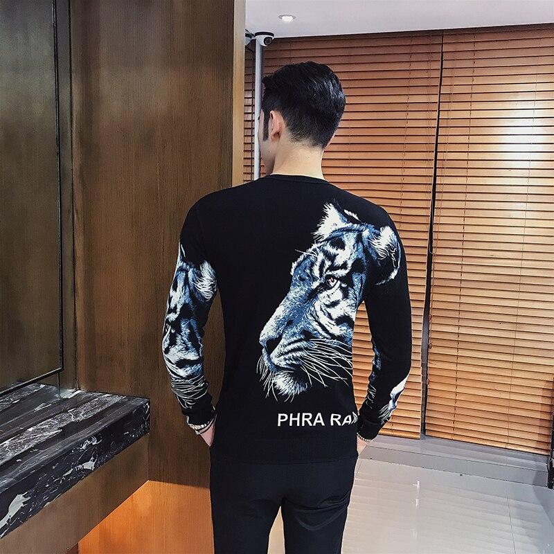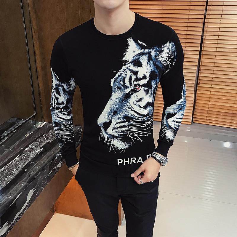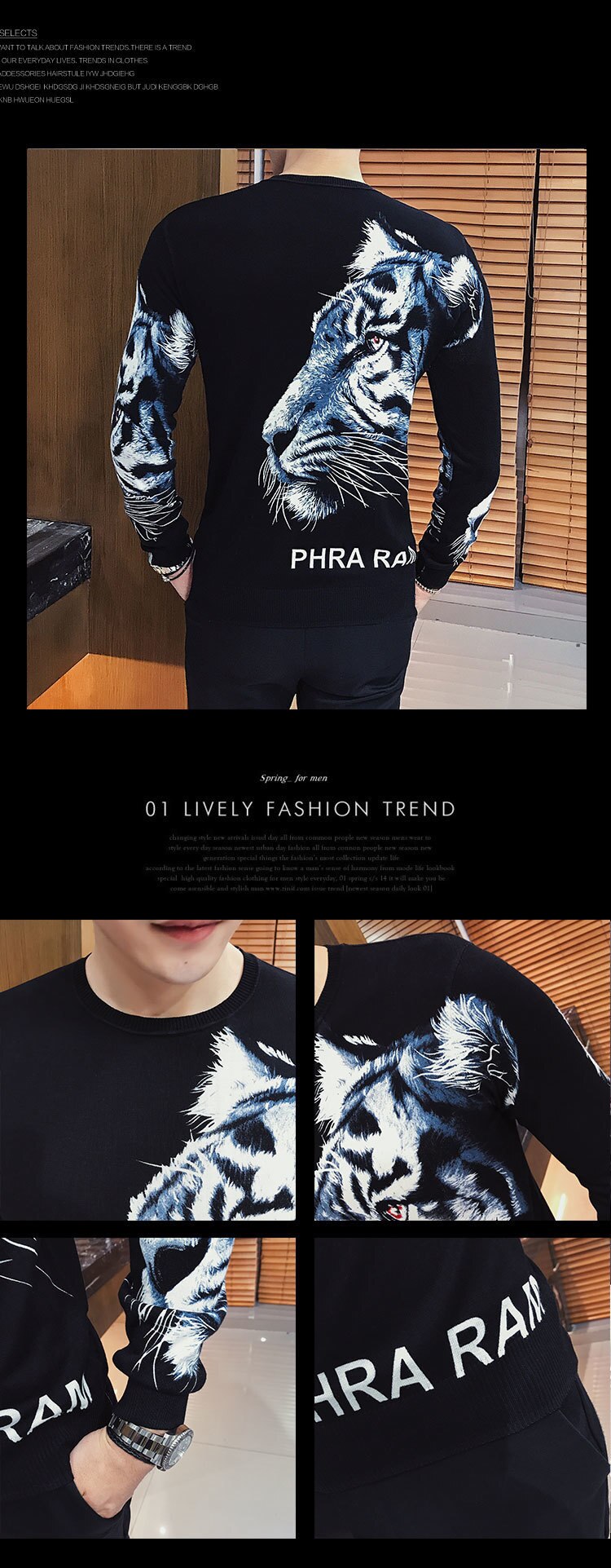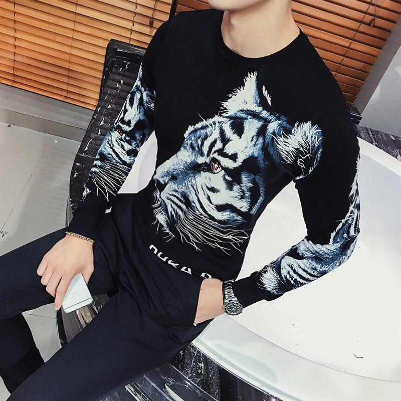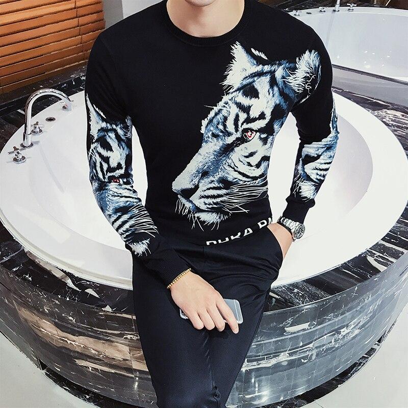 Spring Men's Animal Print O-neck Knitted Pullover Sweater for Club Party