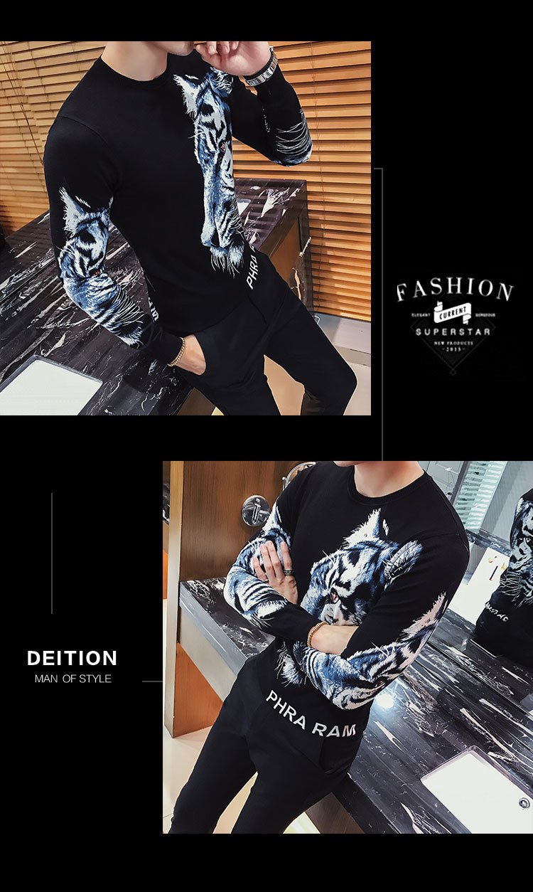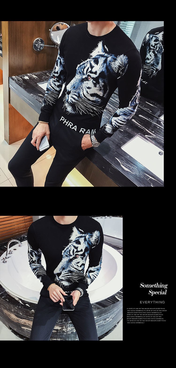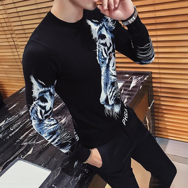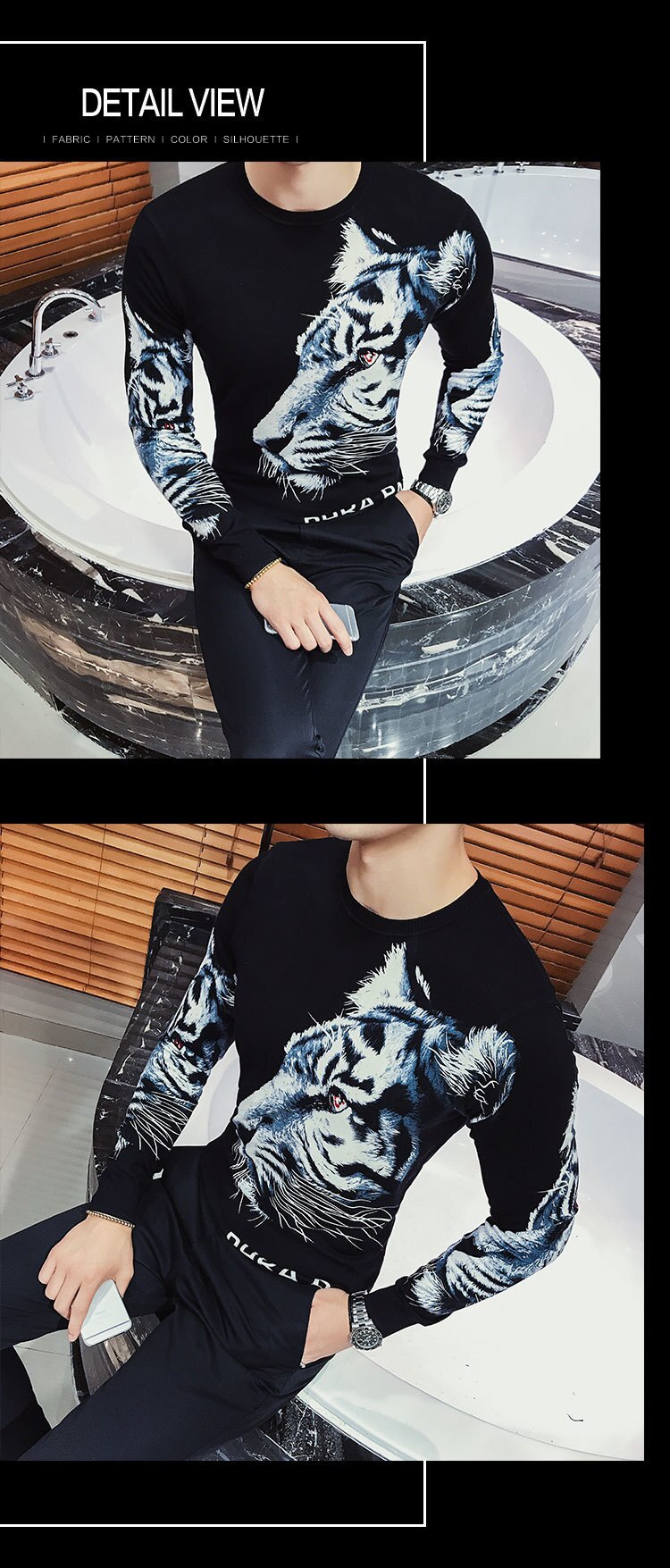 Spring Men's Animal Print O-neck Knitted Pullover Sweater for Club Party