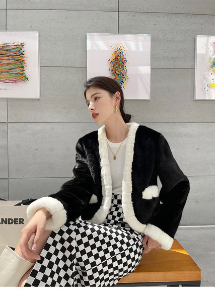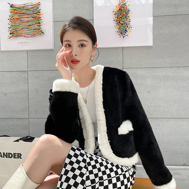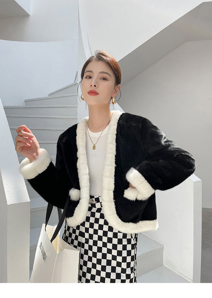 Women's Essential Warm Real Mink Fur Winter Short Cloak Outerwear Jacket