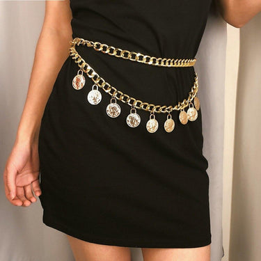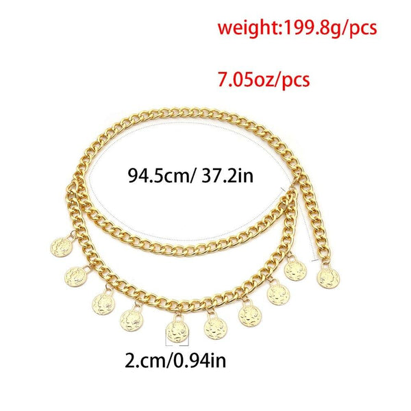 All-match Retro Women's Long Tassels Metal Chain Coin Pendant Waistband