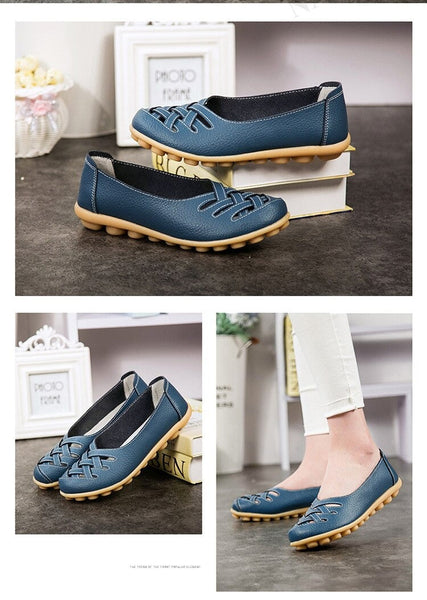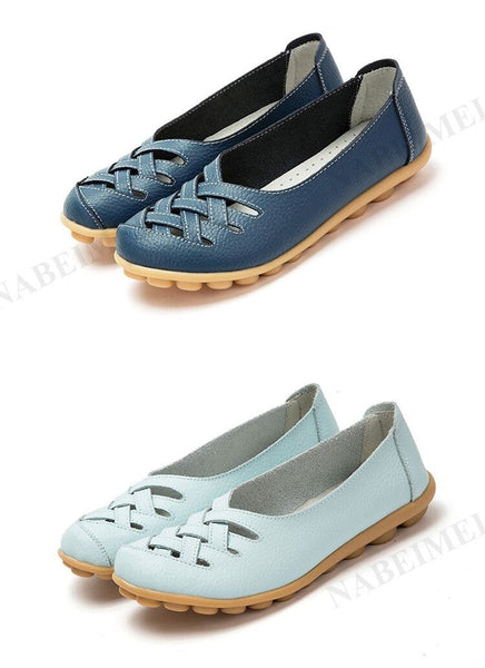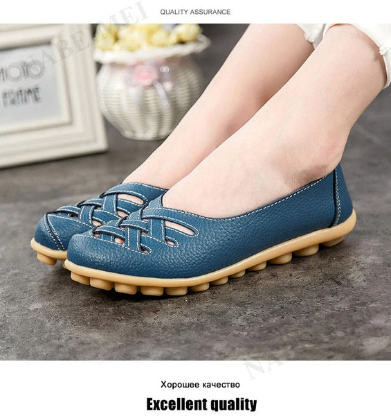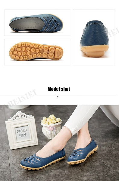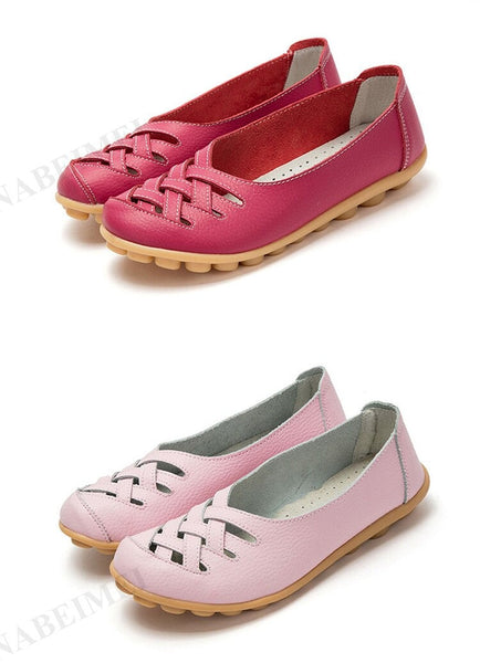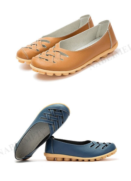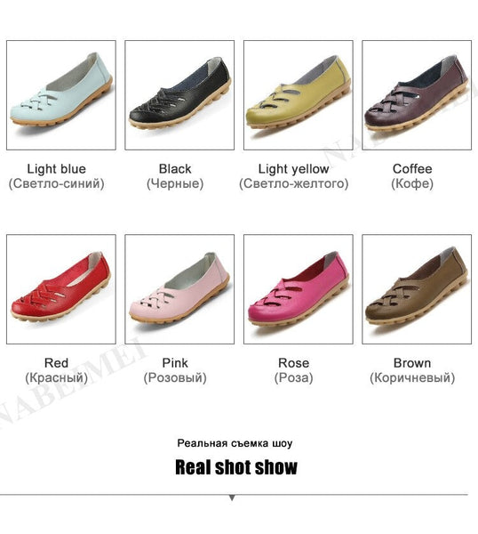Big Size 34-44 Women's Pig Leather Slip-On Flat Oxford Shoes