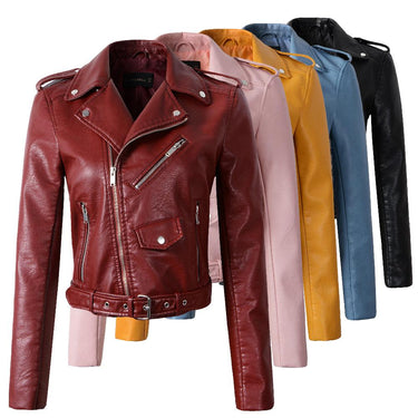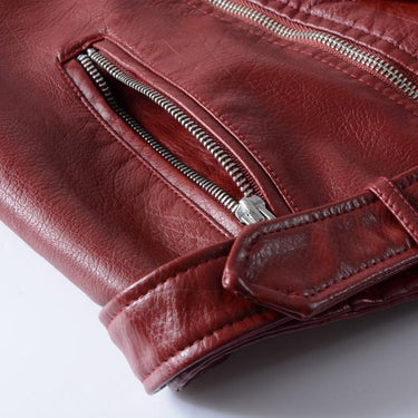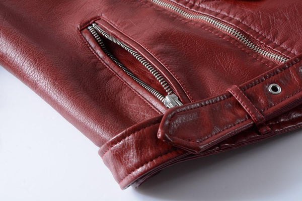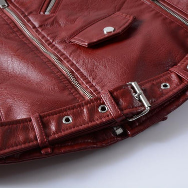 Cool Fashion Women's Wine Red Synthetic Leather Bomber Motorcycle Jacket