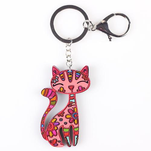 Cute Animal Fashion Jewelry Acrylic Pattern Cat Charm Keychain for Women