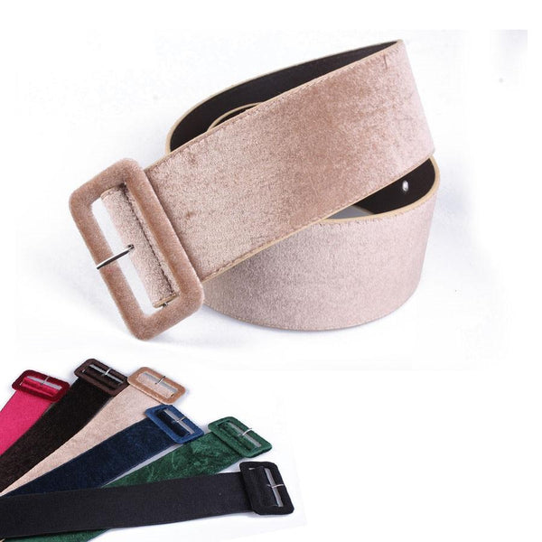 Fashion Silver Pin Buckle Solid Female Party Dress Wide Velvet Belts