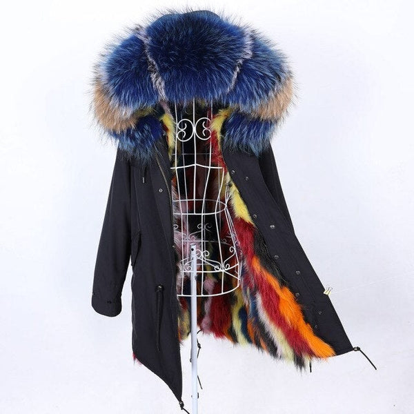 Fashion Women's Winter Big Fur Hooded Coat Jacket with Removable Fur Lining