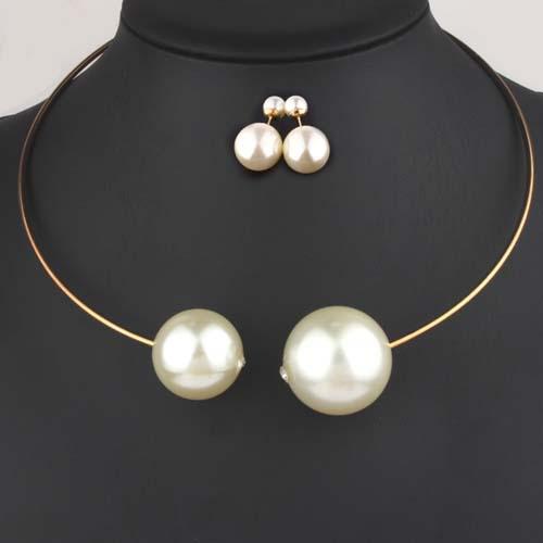 Huge Imitation Pearl Rhinestone Necklace Bangle Earrings Rings Jewelry Sets