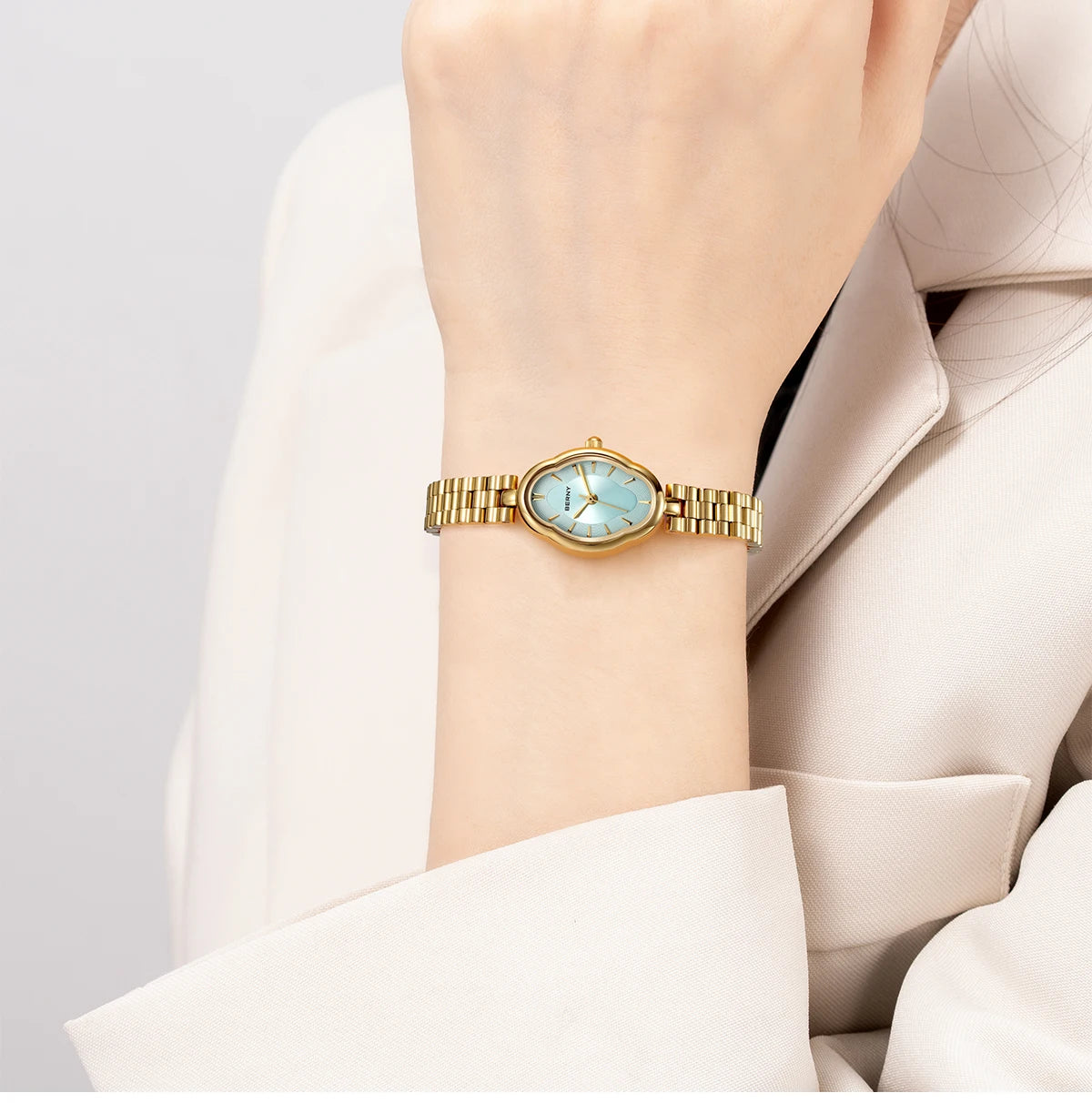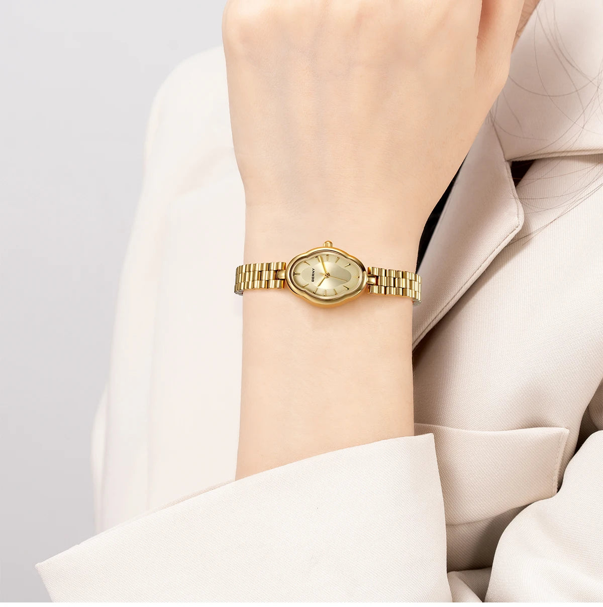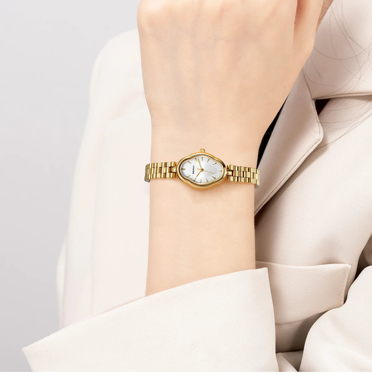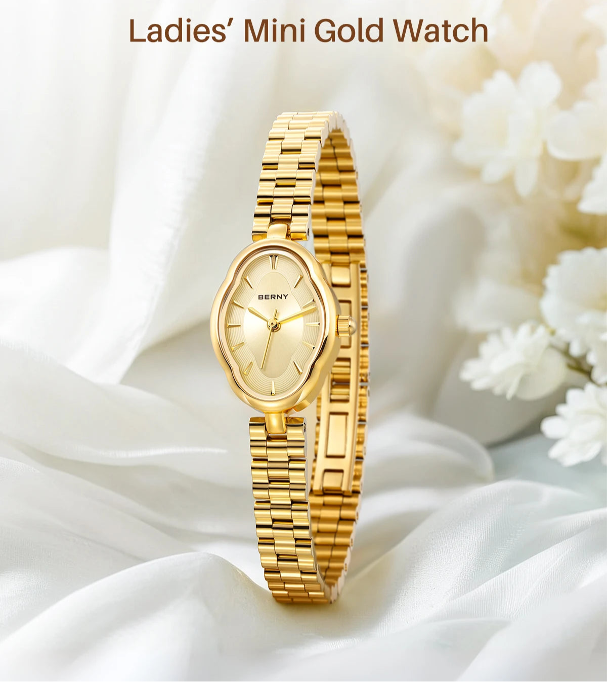 Jewelry Style Minimalistic Small Dial Stainless Steel Golden Quartz Watch for Women