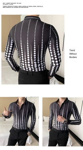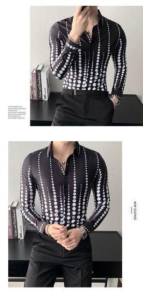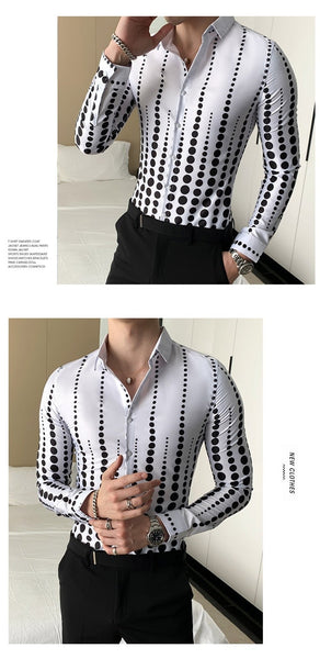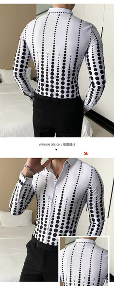 Korean Fashion Men's Dotted Long Sleeve Slim Fit Formal and Casual Shirt