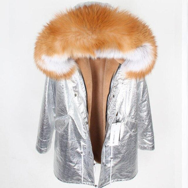 Large Hooded Long Detachable Women's Fox Fur Leather Lining Coats & Jackets