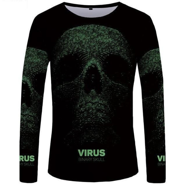 Long Sleeved Clothing Skull Tee Punk 3D Print Motorcycle T-Shirts