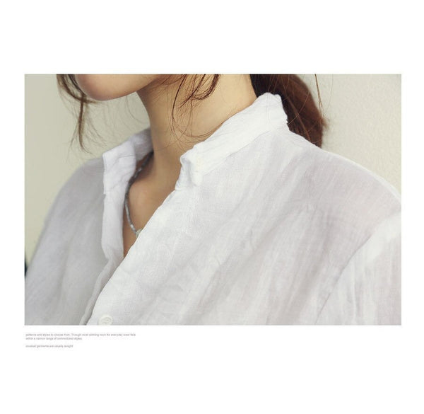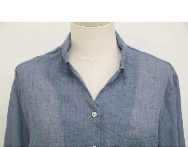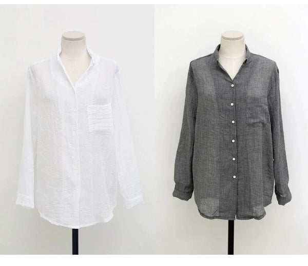 Long-Sleeved White Linen Korean Casual Female Blouse Tops for Autumn