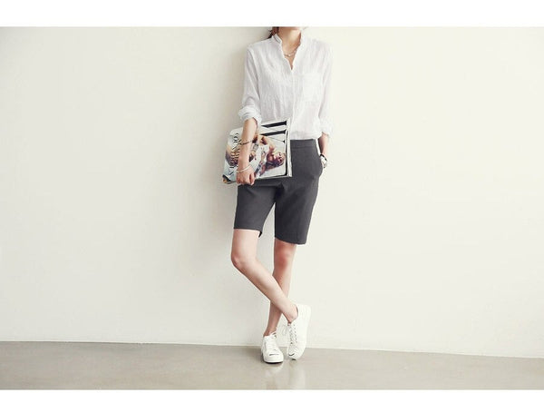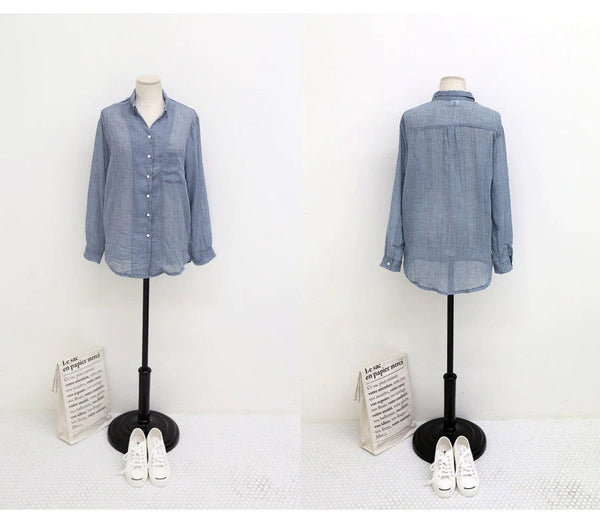 Exquisitely tailored from broadcloth fabric and designed with button decoration, this blouse is perfect for daily wear. The casual style long sleeves will make you look cool and pretty at the same time. Made with cotton and linen material, this tantalizing Korean style blouse is ideal for women.