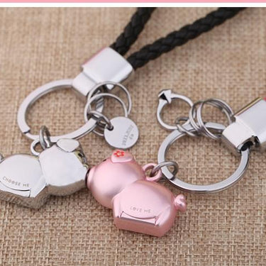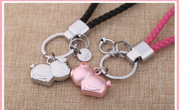 A lovers gift trinket key holder for women, this one is a present each and everyone is going to treasure and cherish in this lifetime. A 3D kiss pig couple Milesi keychain, the idea of this keychain set is that one keychain remains with either of the friends/partners.