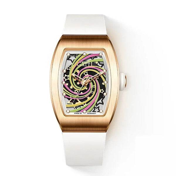 Enhance your lifestyle and update your look with this men's watch, featuring a high-quality flexible rubber strap. With a sapphire crystal dial window, stainless steel case, and a comfortable buckle clasp, this mechanical watch resists water and catches attention with its stunning design. Experience the perfect blend of style and functionality.