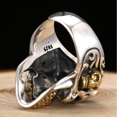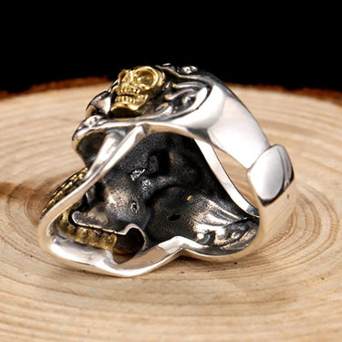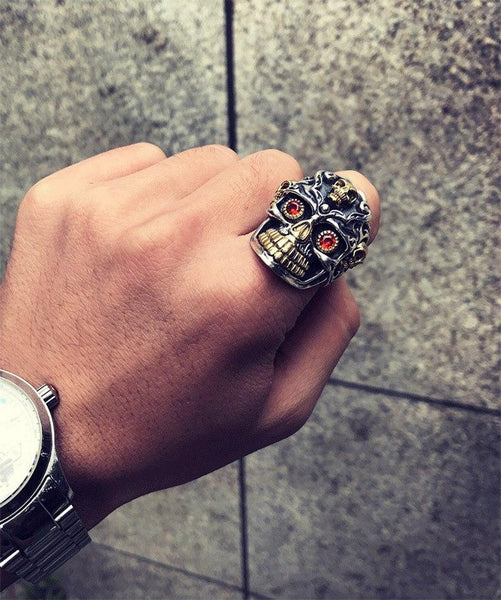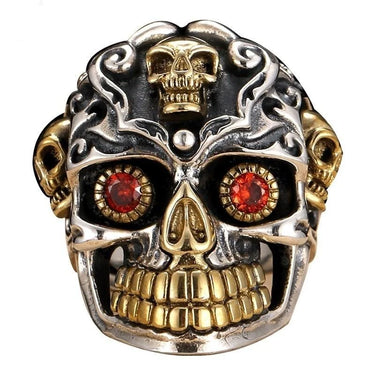 Men's 925 Sterling Silver Punk Red Cubic Zirconia Gothic Skull Silver Ring