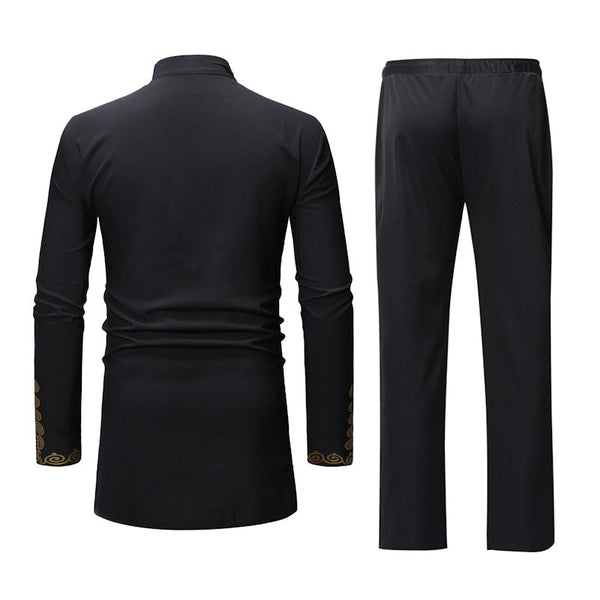 Men's African 3D Printed Ethnic Full Sleeve Traditional Two-Piece Suit