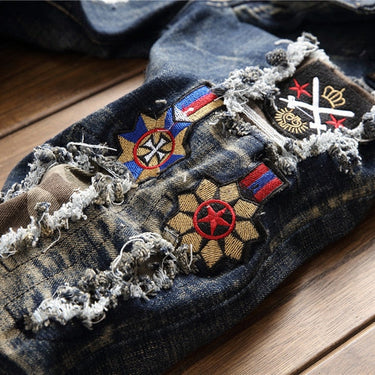 Men's American Blue Badge Embroidered Ripped Straight Leg Jeans Pants