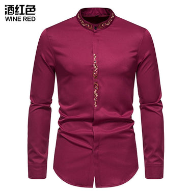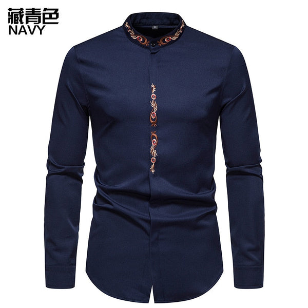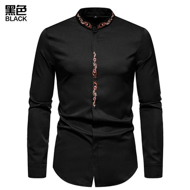 Men's Autumn Cotton Embroidery Slim Fit Long Sleeve Streetwear Shirt