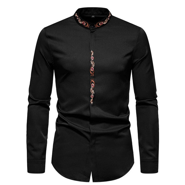 Looking for something different to wear for casual events? Then, there isn't a better option than this men's shirt. The embroidery design on the collar and sleeves elevates the style of this long sleeve shirt. Styled from ideal quality cotton and polyester, this embroidery design shirt is comfortable to wear. Add a little glam to your casual occasion fun!