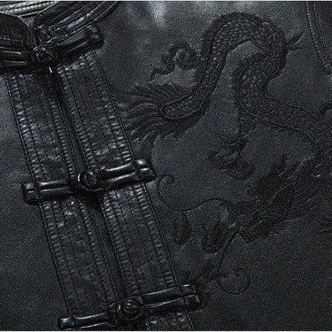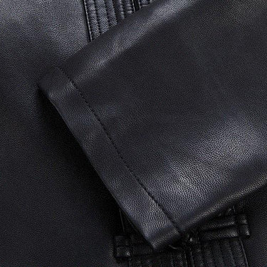 A versatile addition to your wardrobe, this trendy outfit for men is sure to get you noticed. The wide-waisted autumn and winter wear is designed with synthetic leather material. It's a solid patterned daily wear that has full-length sleeves, embroidery decoration and single-breasted closure.