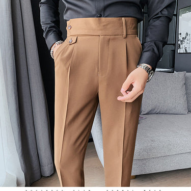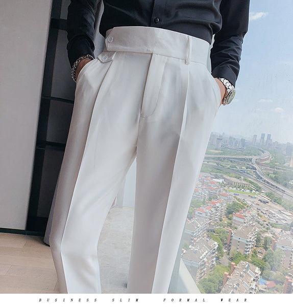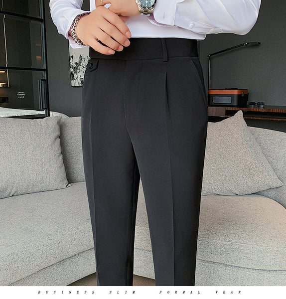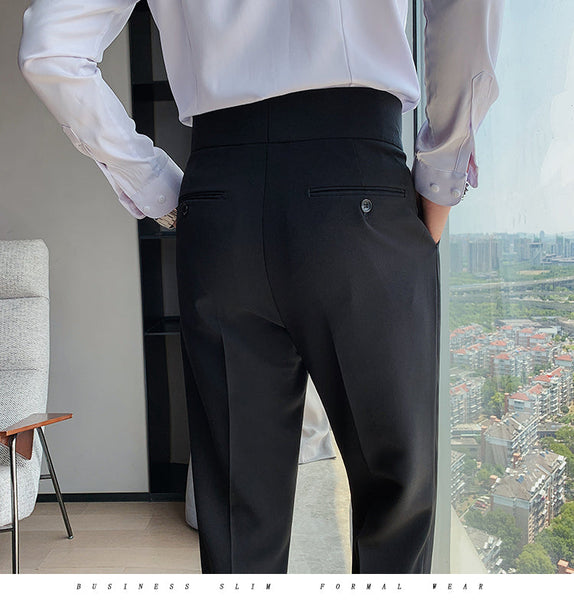 Men's Casual Formal British Style High Waist Slim Fit Office Pants