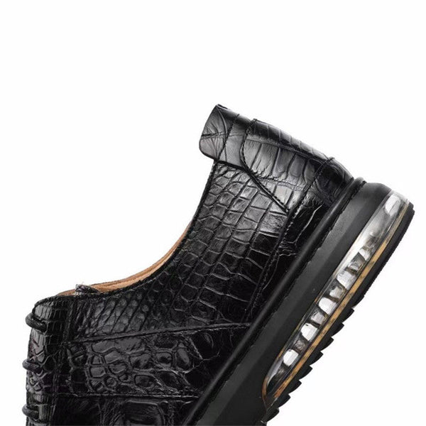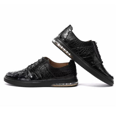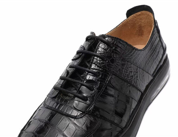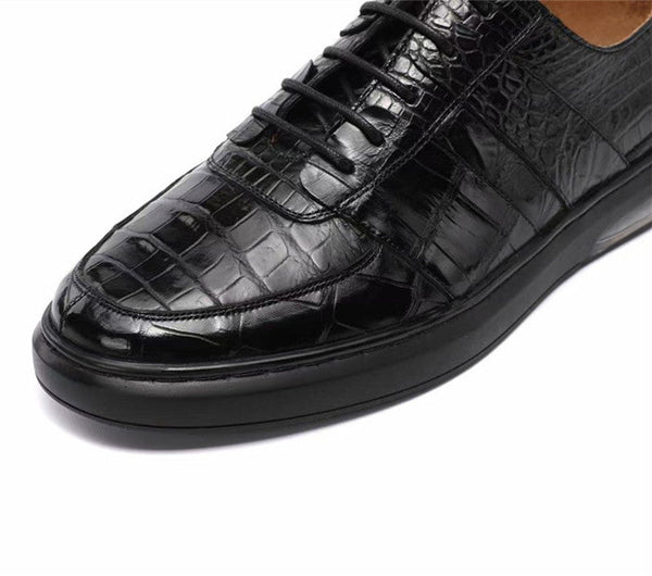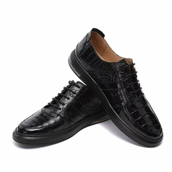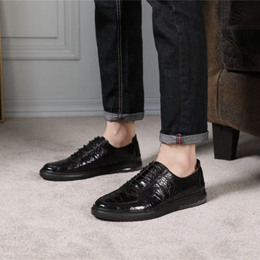 These stylish men's flat casual shoes will add an effortless finish to your everyday attire. These high-fashion flats have a lace-up to improve stability and gait and make the flats ideal for casual occasions. These men's shoes are made of genuine crocodile leather and feature leather insole and lining.