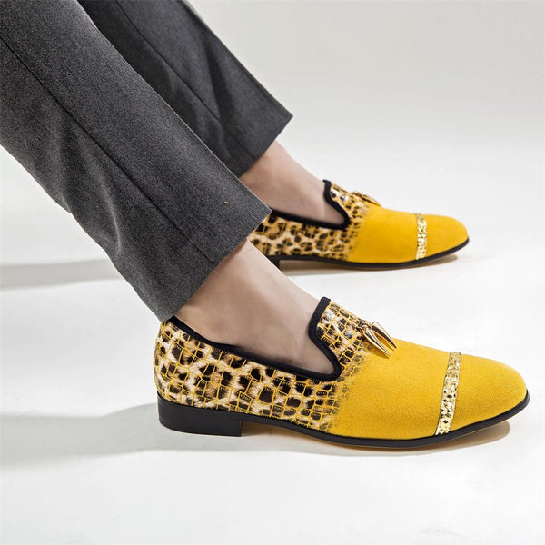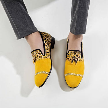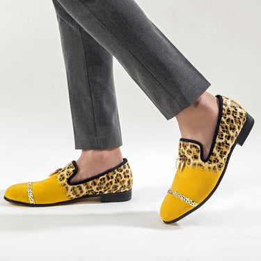 Embrace comfort and style with these men's loafers featuring animal prints. The rubber outsole and short plush insole ensure a comfortable feel and added coziness. Made with a flock upper and slip-on closures, they are perfect for casual events. These alluring loafers are a must-have for the spring or autumn season, making them a captivating addition to your wardrobe.