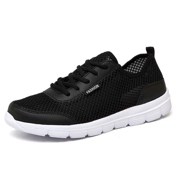 Men's Casual Summer Breathable Lace Up Gray Black Flat Mesh Shoes