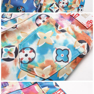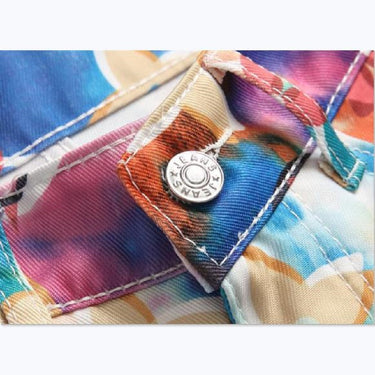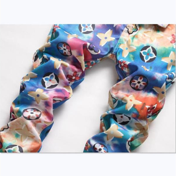 Men's Colorful Digital Print Small Foot Slim Stretch Skinny Jeans Pants