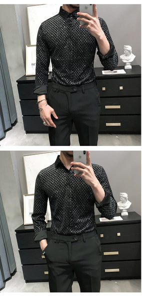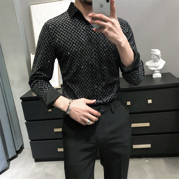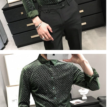 Men's Fashion Gold Velvet Casual and Party Slim Fit Shirts with Long Sleeves