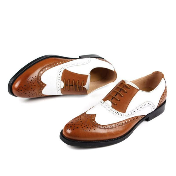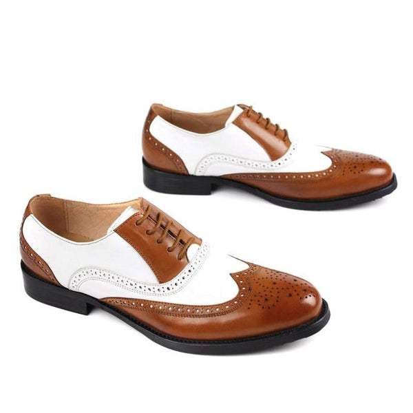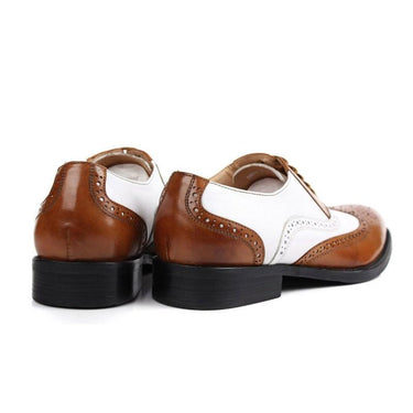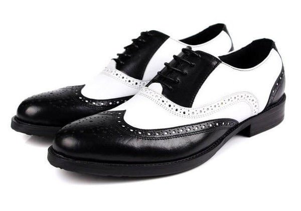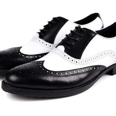 Men's Genuine Leather Lace Up Block Low Heel Wing Tip Black Shoes