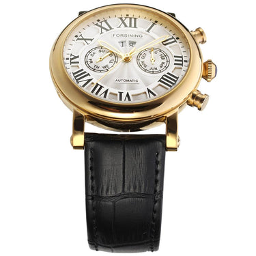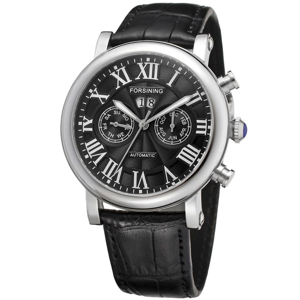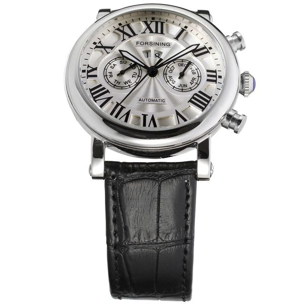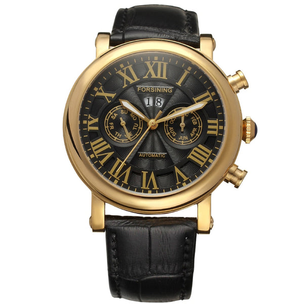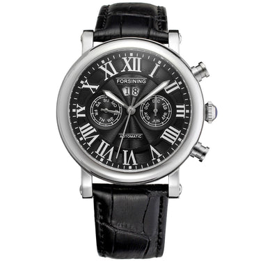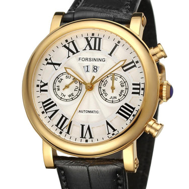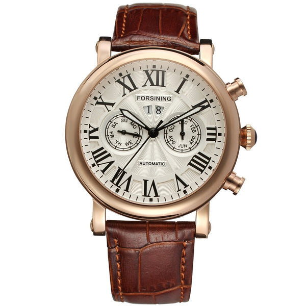 Men's Genuine Leather Luxury Roman Numeral Automatic Mechanical Watch