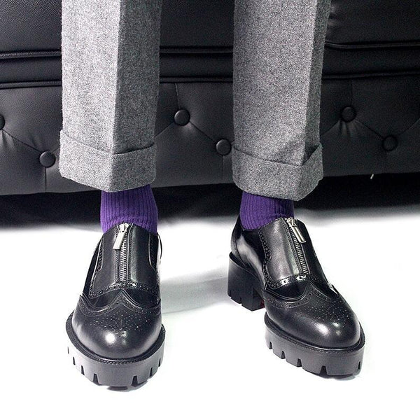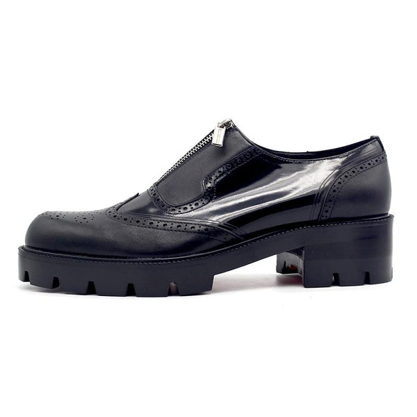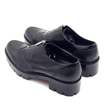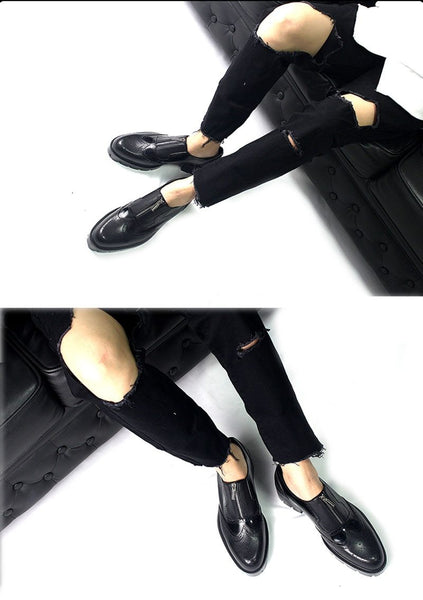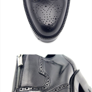 Men's Genuine Leather Zip Thick Platform Wing Tip Brogue Shoes