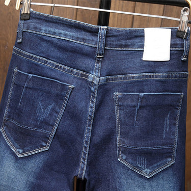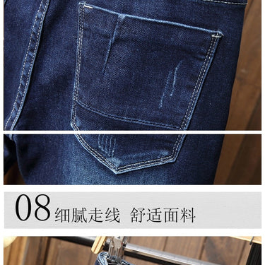Men's Hip Hop Style Hole Patch Embroidery Mid Waist Straight Leg Jeans