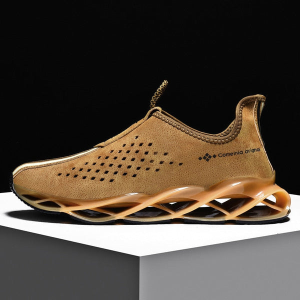 Men's Khaki Unique Blade Sole Waterproof Outdoor Running Shoes