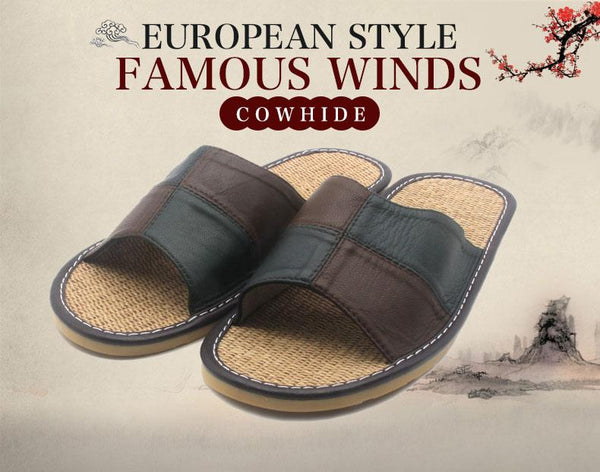 Men's Linen Sheepskin Leather Home Slippers for Indoor and Bedroom Use