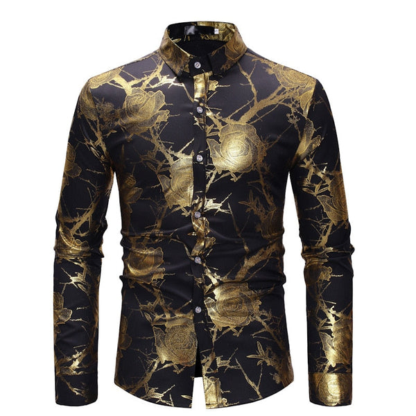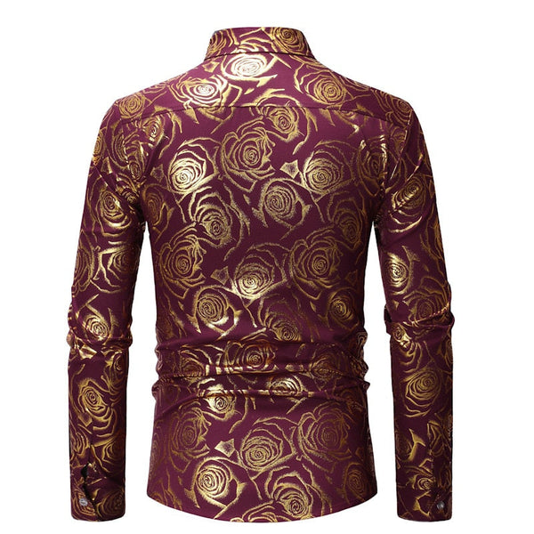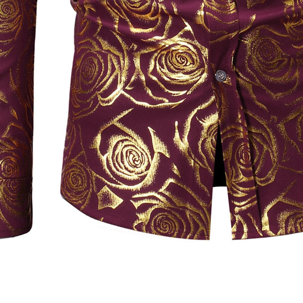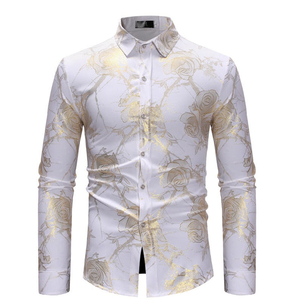 Men's Luxury Casual Floral Pattern Partywear Wedding Long Sleeve Shirt