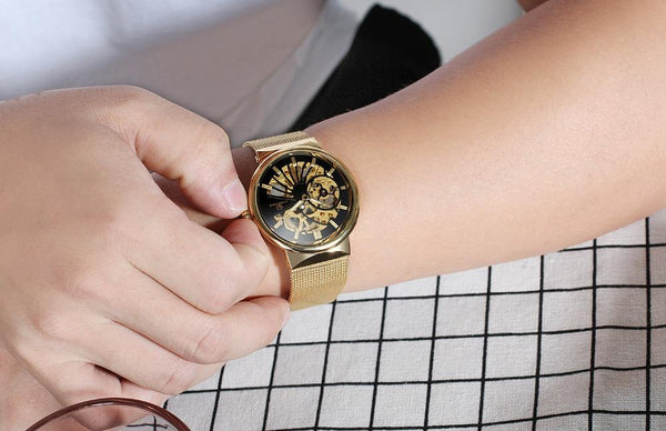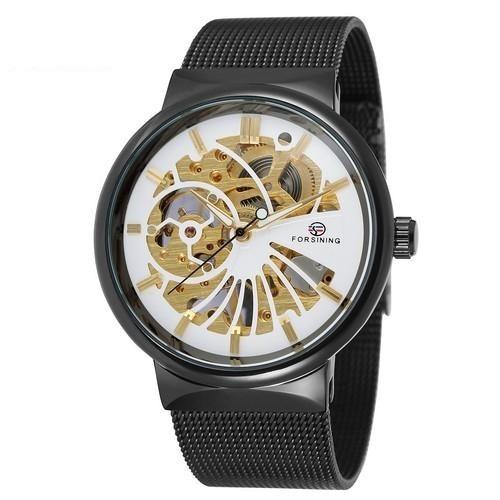 To add a sporty touch to your every day look, this friendliest Mechanical Hand-wind Ultra Thin Watch is made of alloy case and stainless steel band. The round case ad fine detailing in the band makes it a superb fashion accessory and visually aesthetic. The watch comes with a folding clasp for proper closure.