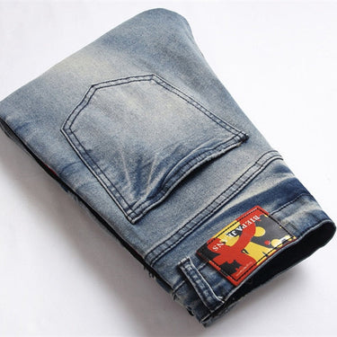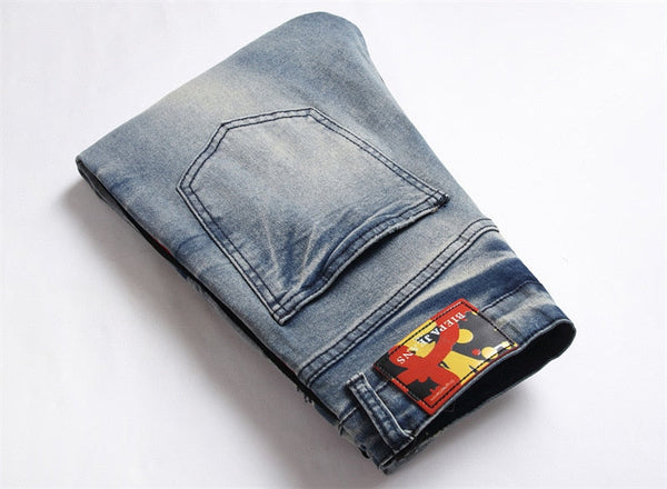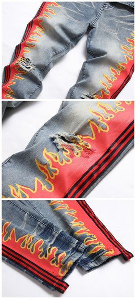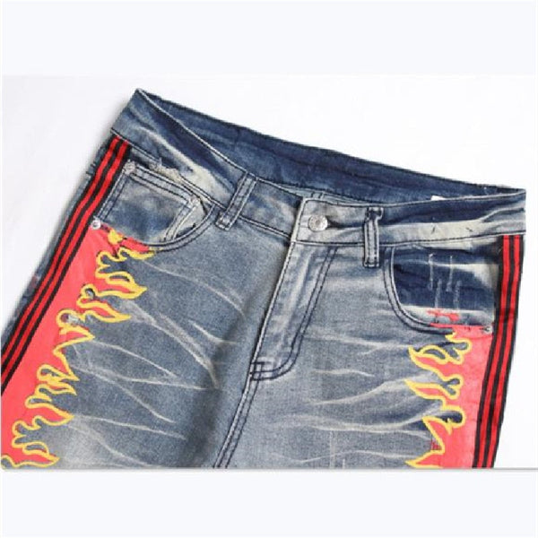 Men's Punk Style Ripped Side Printed Mid-waist Straight Leg Casual Jeans Pants